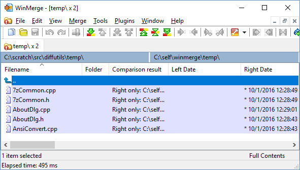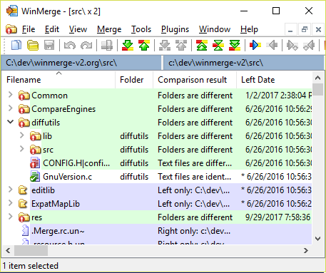 WinMerge יכול להשוות את התוכן של קבצי ארכיון בעלי אותו שם בשני הצדדים: